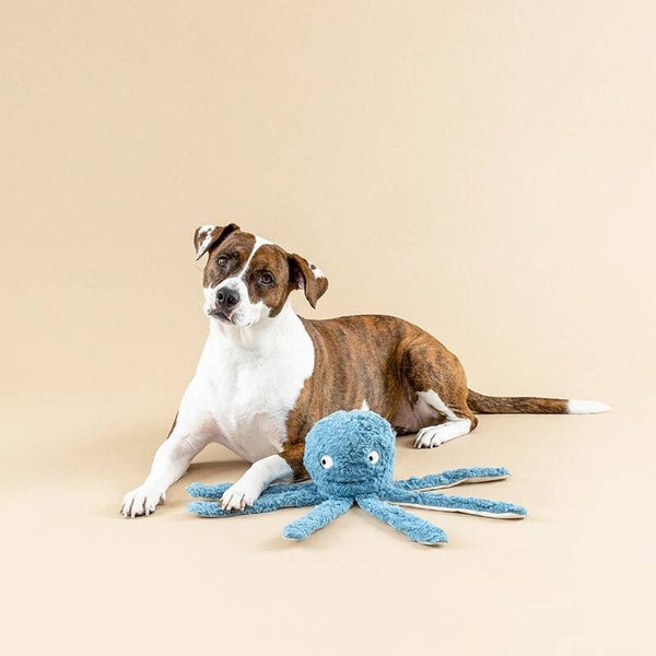 Het milieuvriendelijke hondenspeelgoed "Long Time No Sea" van PetShop by Fringe Studio is het perfecte speelgoed voor jouw pup. Dit speelgoed is ontworpen met interactief spelen in gedachten en een look die past bij de moderne woninginrichting (en de planeet!) met behulp van niet-giftig katoenen canvas, sojabont, gesponnen gerecyclede waterflesvulling, een TPR-piepbal met stekels en gekke kreukels.